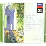 The Essential Falla Review"The Essential Falla" is just that, including all of Manuel de Falla's major works (performed by the likes of Dutoit, Fruhbeck de Burgos and de Larrocha) on these two CDs. Highlights are excellent performances of Falla's three most famous works: "El amor brujo", "Noches en los jardines de Espana" and "El Sombrero de tres picos". The rest of the included music is perhaps less well-know but no less enjoyable. Perhaps the only quibble I have with this CD is the enclusion of the Harpsicord Concerto. While it is an enjoyable piece, it is very much a Stravinsky-esque neo-classical work, and it seems somewhat out of place amongst Falla's other, very Spanish, works. Nonetheless, if you enjoy 20th Century Spanish music, this CD is indeed an essential.The Essential Falla OverviewWant to learn more information about The Essential Falla?