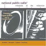Preludes, Fugues and Riffs: Jazz in Classical Music ReviewThis NPR compilation from Sony brings together some of Bernstein's jazziest recordings during his heyday with the NY Phil., including the best of his three versions of Milhaud's "Le Creation du Monde." LB was attached to this piece, but his late- Seventies reading on EMI has hardening of the arteries and his 1945 debut recording predates LP. Milhaud created a minor masterpiece of jazzy classicism in this work, and LB gives us a swinging take.His own Prelude, Fugue, and Riff is just as good a piece, and here there's no hesitaiton in saying that Bernstein's reading, featuring the NY Phil's legendary first clarinetist Stanley Drucker, is definitive, as is his recording of Music for the Theater by his mentor, Aaron Copland. When I was a kid in the Fifties, all these pieces still had a lot of juice, and although the landscape has changed, for me they still do. The immortal chestnut on this CD is, of course, Rhapsody in Blue, tossed off by Tilson Thomas in the original jazz band orchestration and done faster than we generally hear the piece, thanks to the gimmick of having the ocmposer himself dubbed in as the soloist. It's a gimmich but fun for a listen or two. Gershwin rips through the Rhapsody in 13 min. flat--about 5 min. faster than normal--and MTT is hard-pressed to adjust to the composer's many sudden tempo changes.Preludes, Fugues and Riffs: Jazz in Classical Music Overview